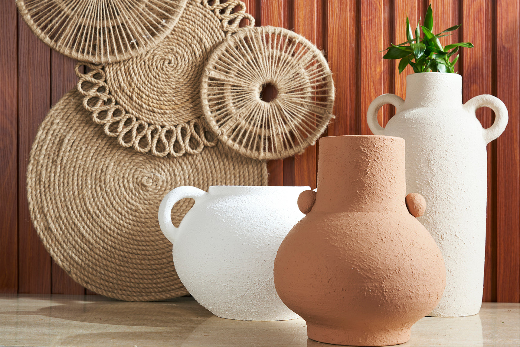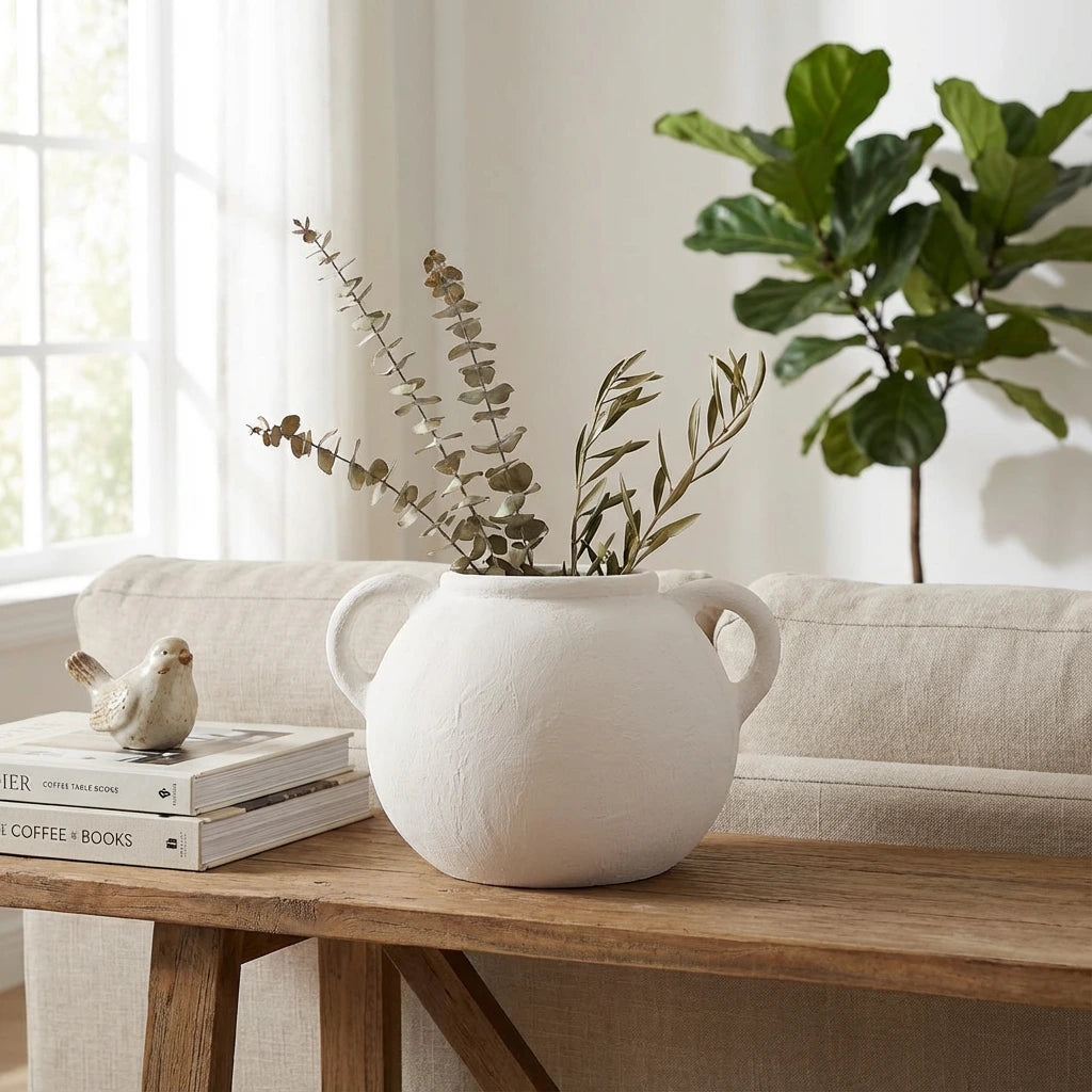 Bring a sculptural element to your decor with Bolca, Boba and Bovy Vases. These handcrafted pieces feature rounded, organic shapes enhanced by elegant side handles, making them beautiful accents for any living space. Their earthy, matte finishes and smooth textures create a natural, rustic feel, while the bold silhouettes add volume and visual interest to your decor.